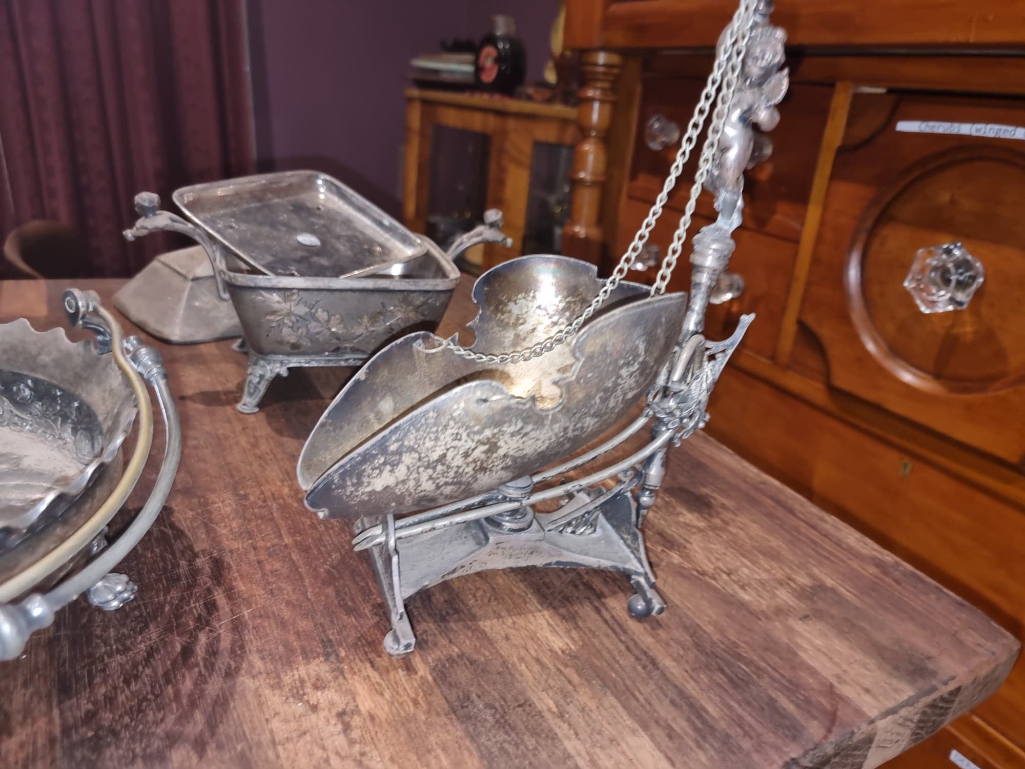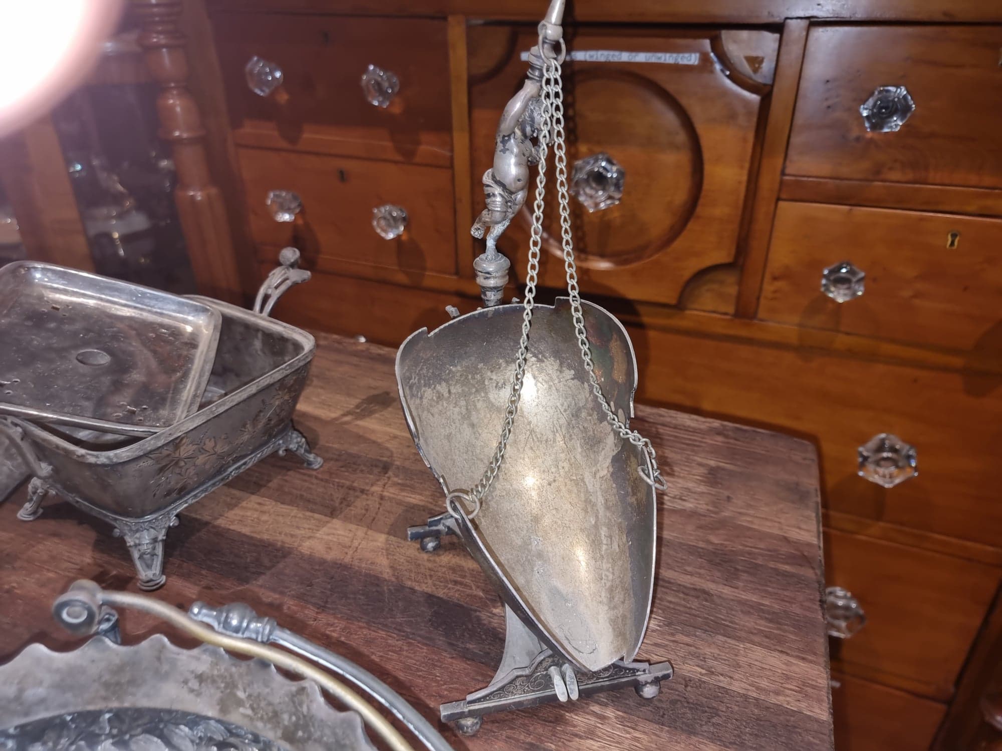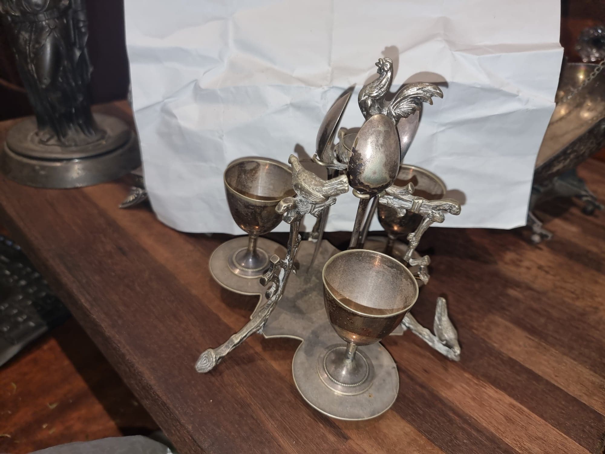 2 handles. Marked Wm Rogers 54. Stand about b20 cms high or 8