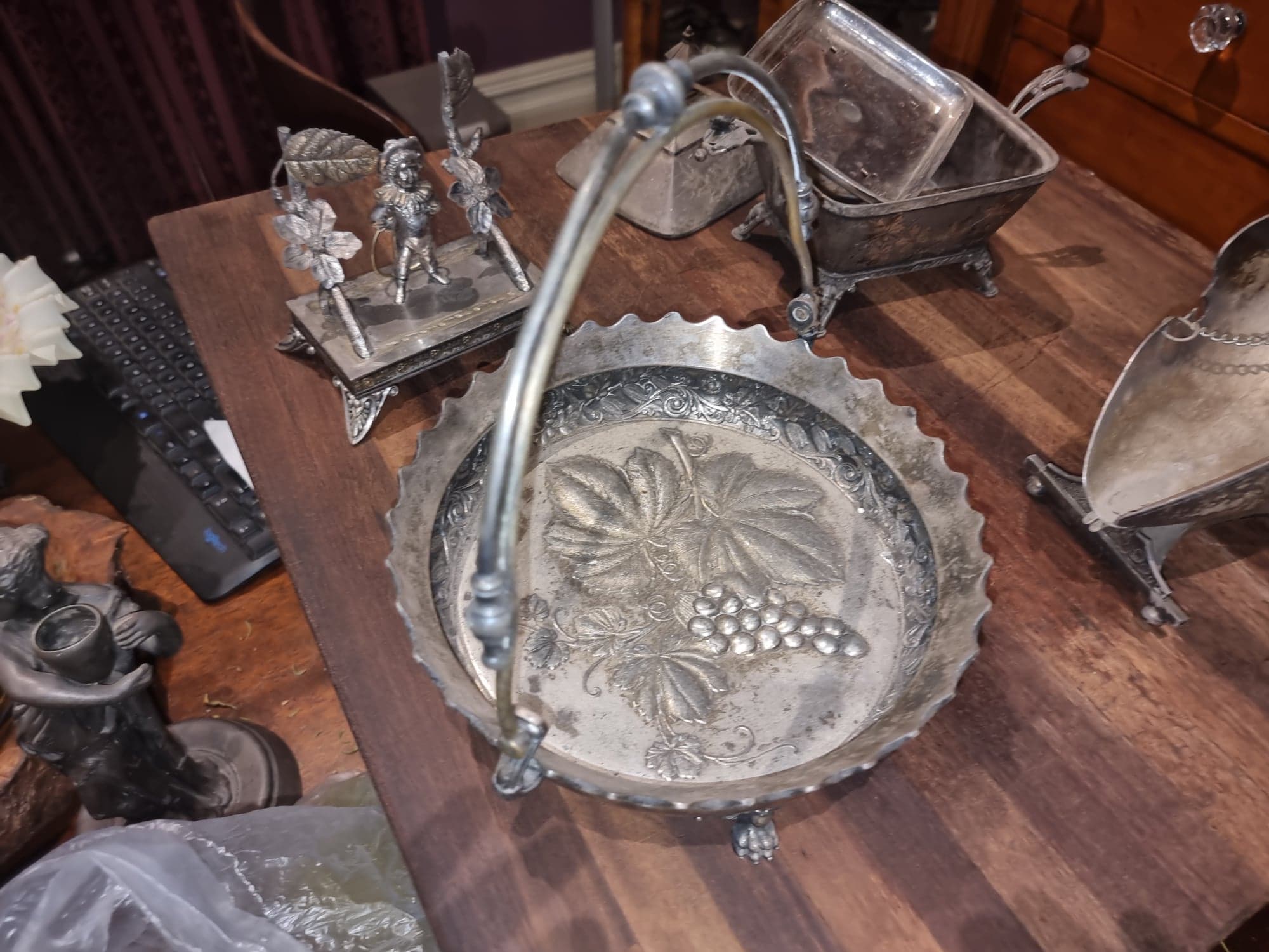 is a superb Victorian silver-plated brides basket with embrossed fruit