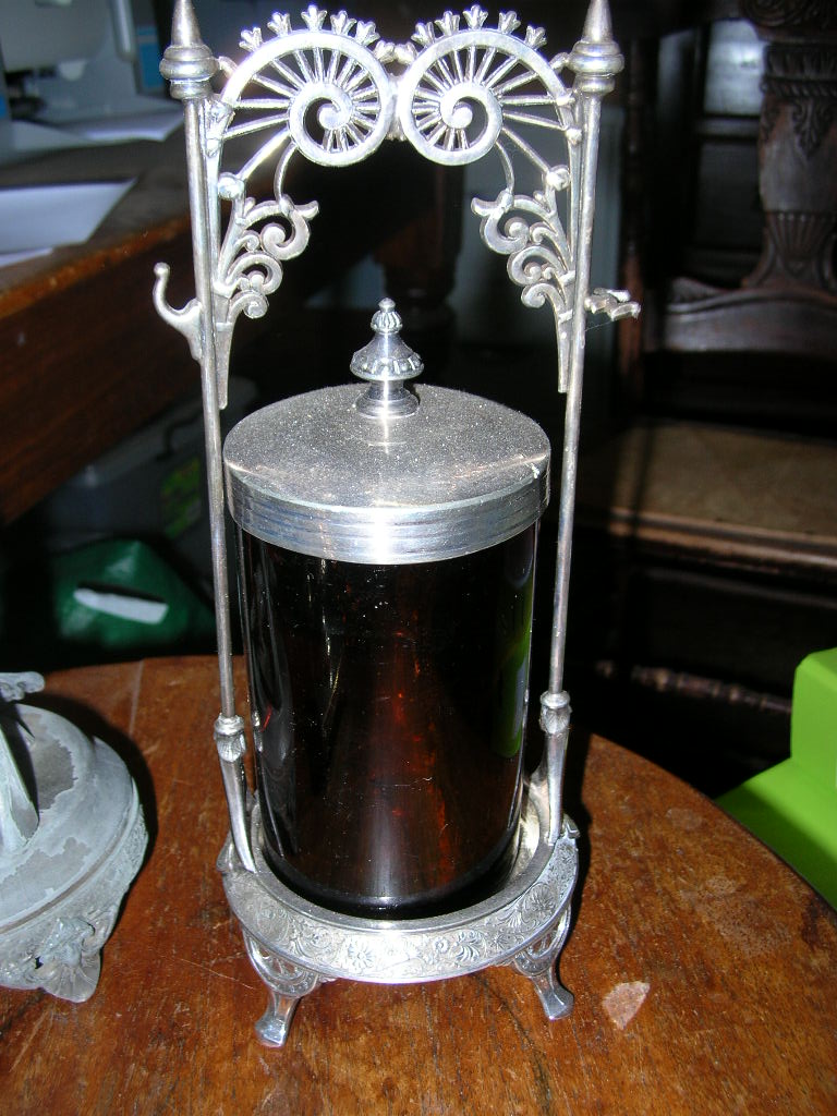 castor, Wilcox Silver Plate Co. #94, amber glass jar