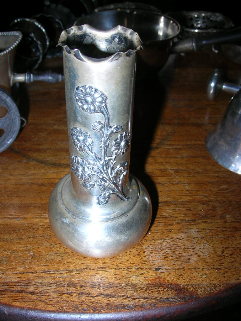 couple of tiny dings around the tulb part of the vase. I have not cleaned or polished the item.