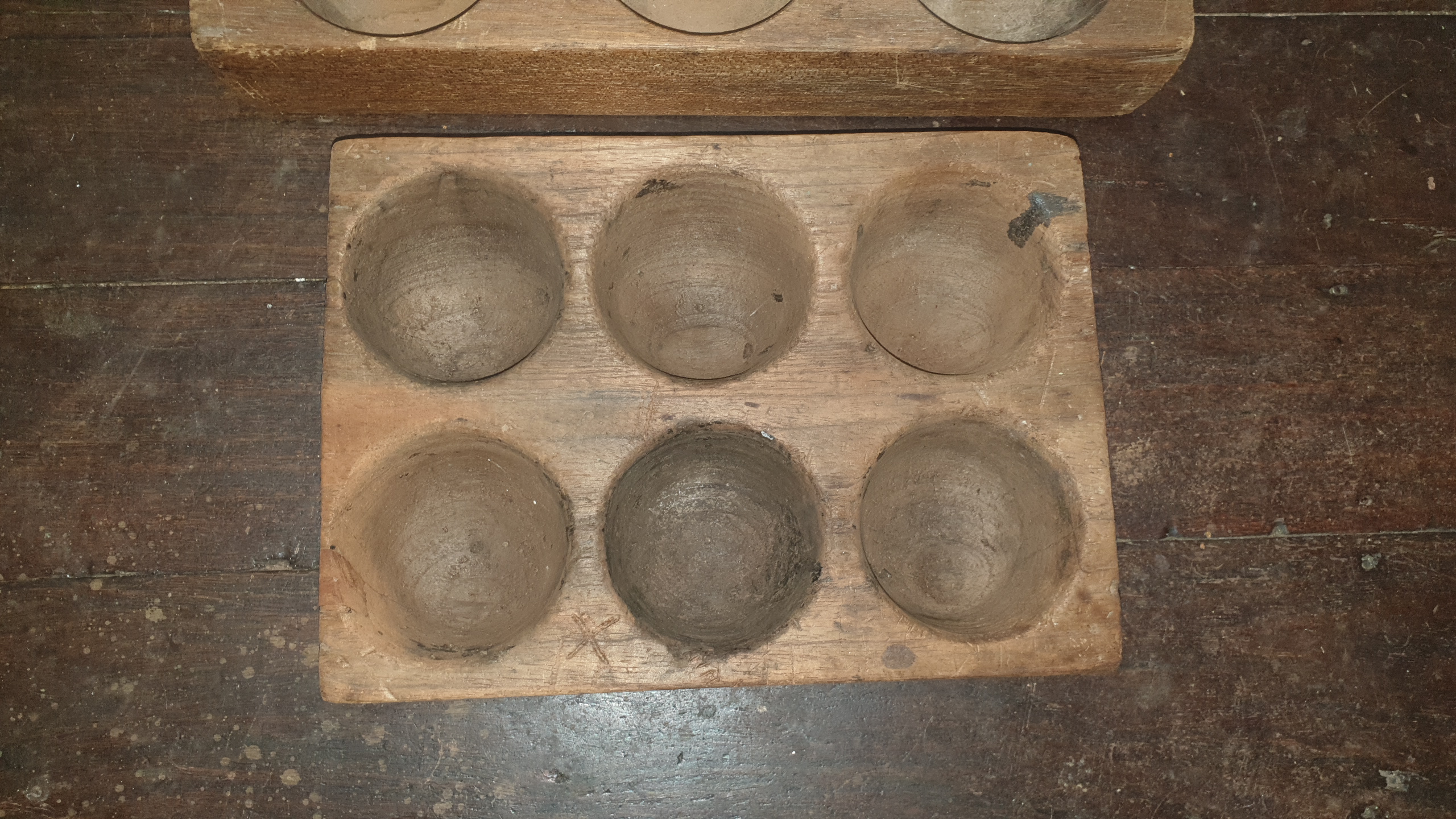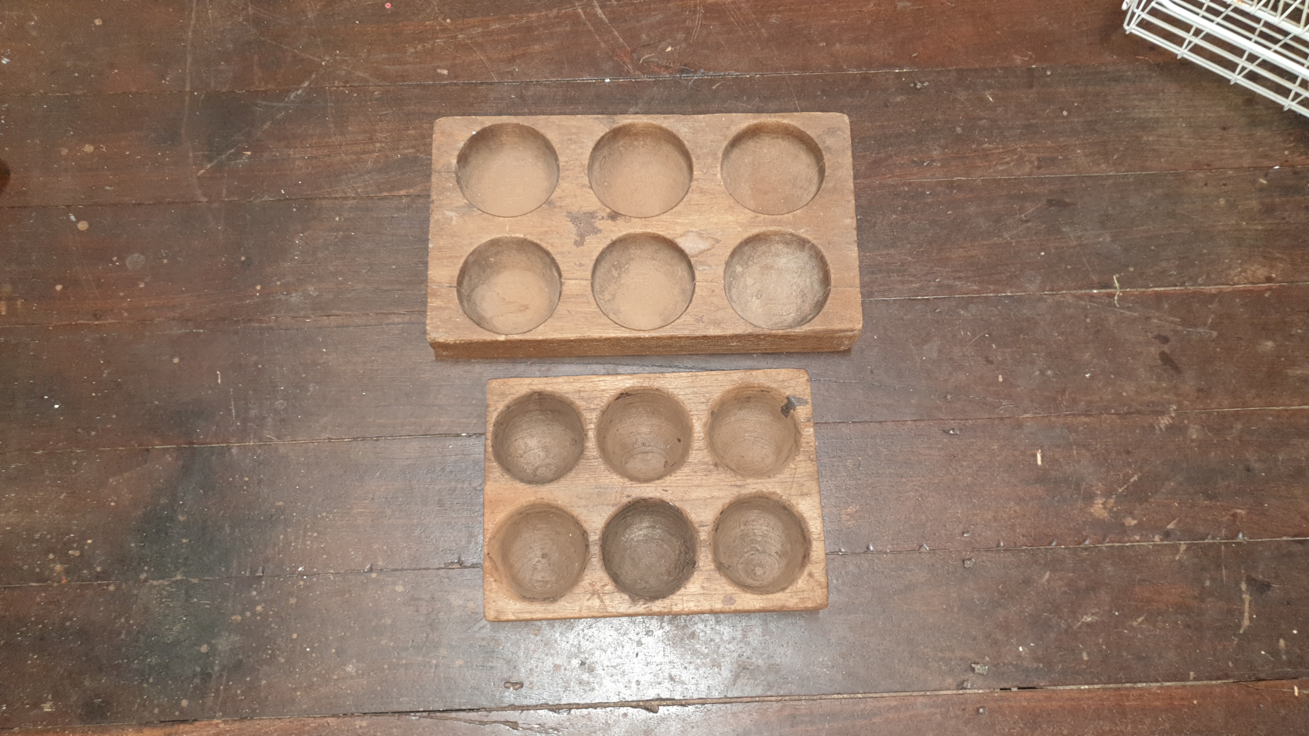 It is rematkable that thise two early coin registers have survived for so long. They were the old stores coin register. Made from Australian red cedar and dating to around c1850. I often wonder how they cut the hemispherical holes out. You will be lucky to see anything like these again. They are Australian and from our colonial days. They are museum quality. I have not tried to restore them in any way.